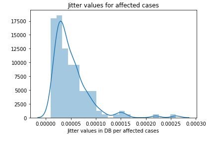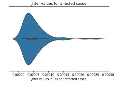 plt.xlabel('Jitter values in DB per affected cases')