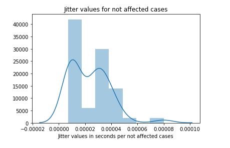 figure 17:Distribution plot with histogram showing the Jitter values for not affected cases